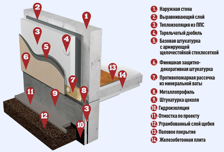 Разработан шаблон спецификации в соответствии с ГОСТ Р 21.1101-2013. Стена подвала с теплоизоляцией из пенополистирольных плит ППС35-Т с несущей конструкцией из кирпича. Плиты теплоизоляции точечно приклеивают к наружной поверхности стены подвала после выполнения по ней гидроизоляции и дополнительно крепят анкерами с тарельчатыми дюбелями. Применяется в многоэтажном строительстве.