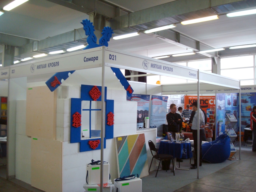 Участие в выставке «Стройиндустрия»- традиция для завода «Мягкая кровля». В этом году на стенде завода была представлена часть Теплого дома из несъемной опалубки. Всю конструкцию дома можно было посмотреть на месте, проконсультироваться со специалистами, ознакомиться с ценами на продукцию. Также были представлены образцы кровли и гидроизоляции: рулонные битумные, модифицированные наплавляемые кровли и рулонные наплавляемые материалы, а также битумы и мастики.