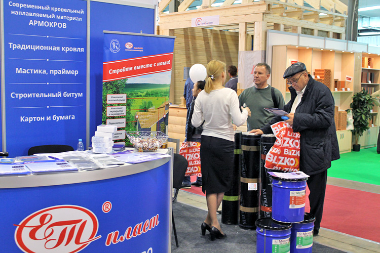 Завод «Мягкая кровля» встречал на своем стенде посетителей образцами не только гидроизоляционных и кровельных материалов, но и энергосберегающей технологией строительства домов.